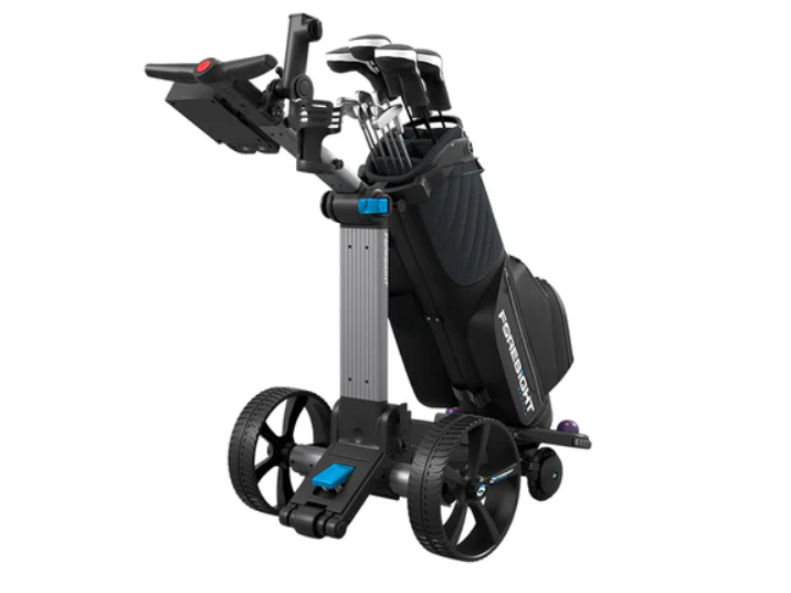 Every ForeCaddy comes equipped with course-day essentials, a scorecard and ball holder, umbrella and cup holders, and a phone charger, plus a one-year warranty for extra peace of mind.