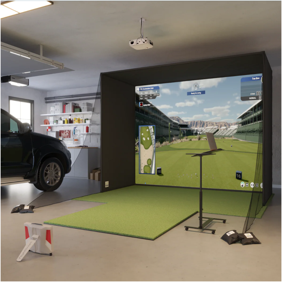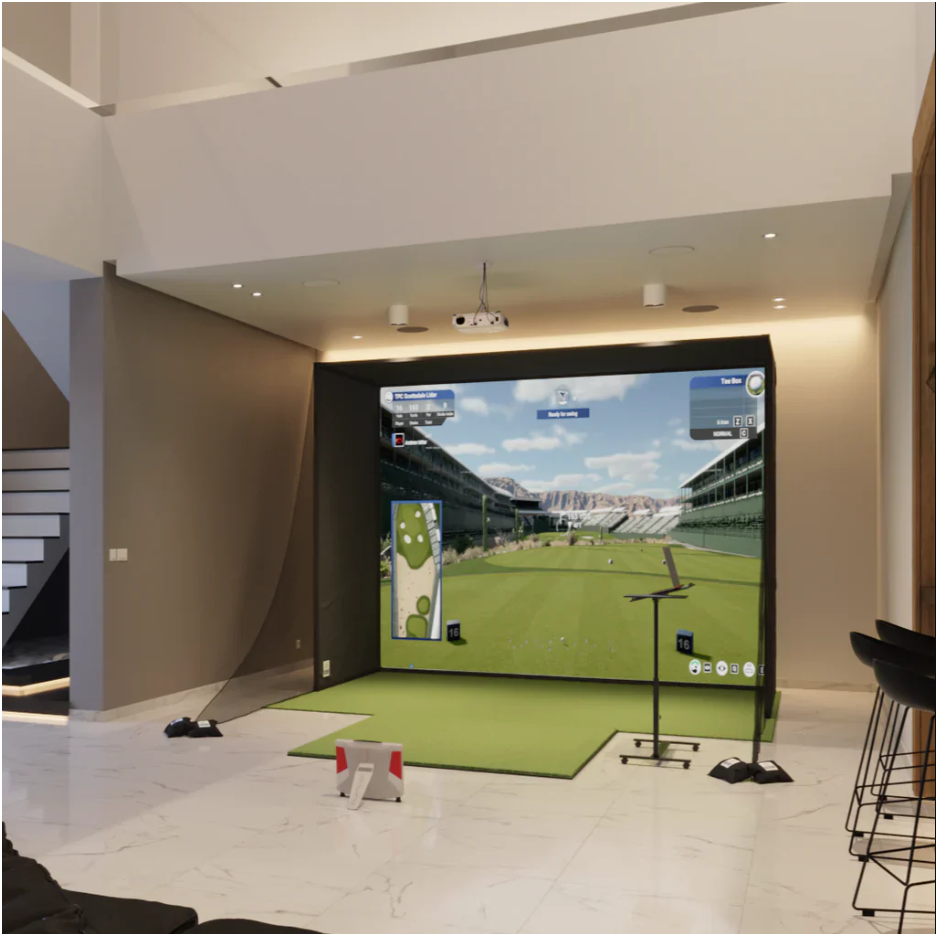 - Set up as a Gaming Room: The enclosure, projector, turf, blackout curtains, you’re practically building a gaming rig, but for golf.