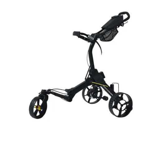 Setup and fold down take seconds. One click extends the frame. One click folds it again. The low-center design keeps the bag steady and the automatic parking brake holds position on a slope. It’s convenience arranged around real course life.