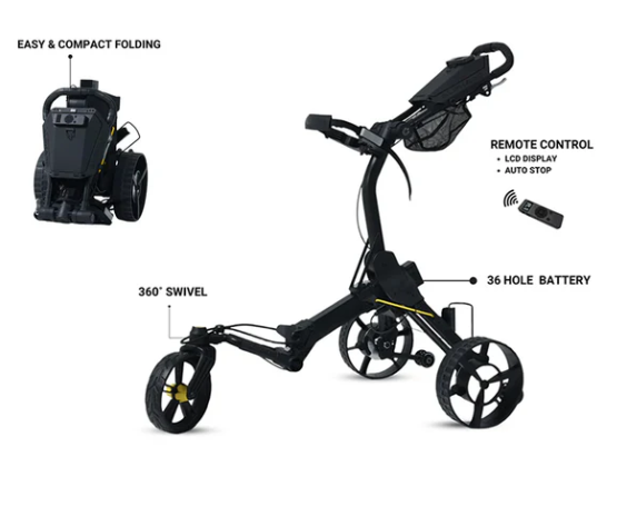 The Cybercart is built around twin hub motors. They deliver steady power and handle slopes without drama. A long-life lithium battery keeps you on the course. In real terms, that means the cart can run for many holes on a single charge. These are not vague claims, they come from the manufacturer and verified sellers.