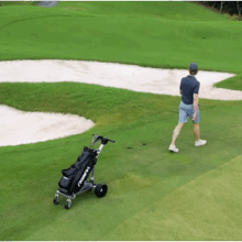 AI guidance brings calm to every step. The caddy tracks your position with precision. It holds a consistent gap behind you. It adjusts speed as the terrain changes. Obstacles trigger smart avoidance. Steep slopes meet automatic braking. Corners feel composed and safe. Stop, and it stops. Turn and it tracks. Your gear arrives beside you, ready for the next club.