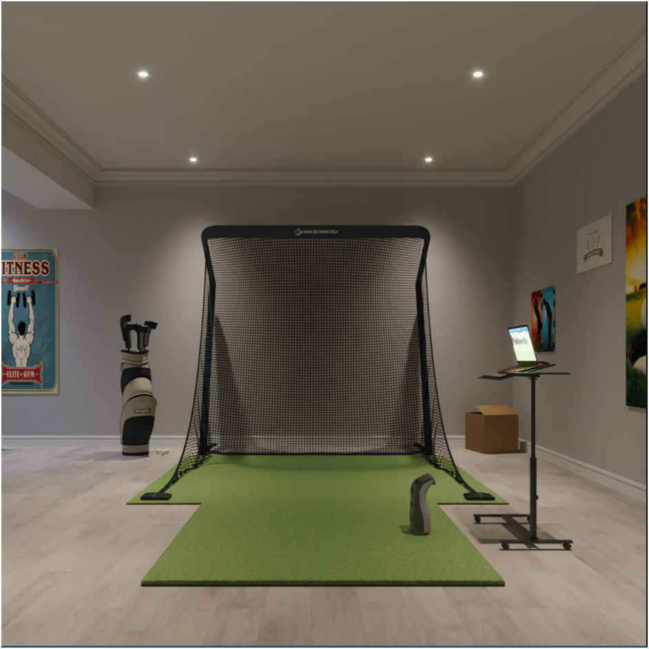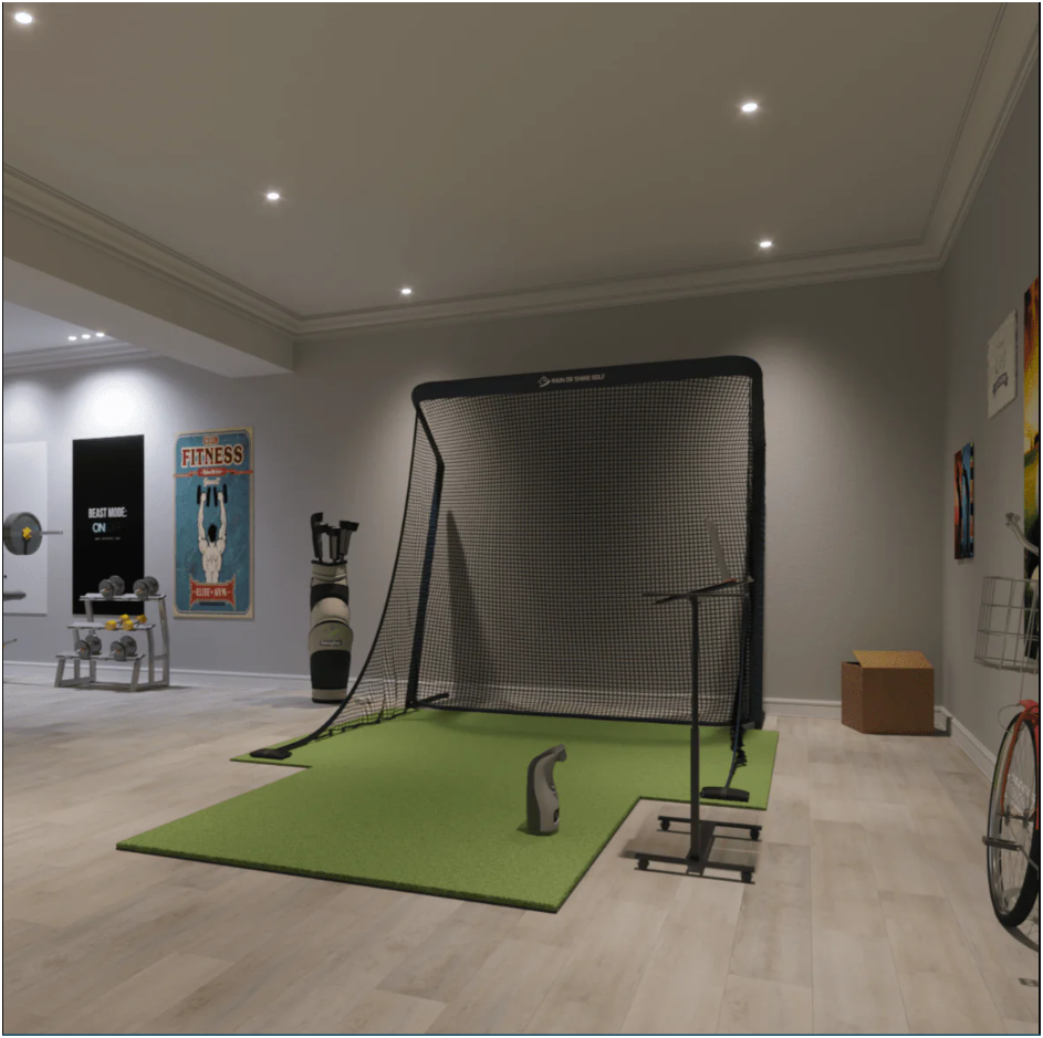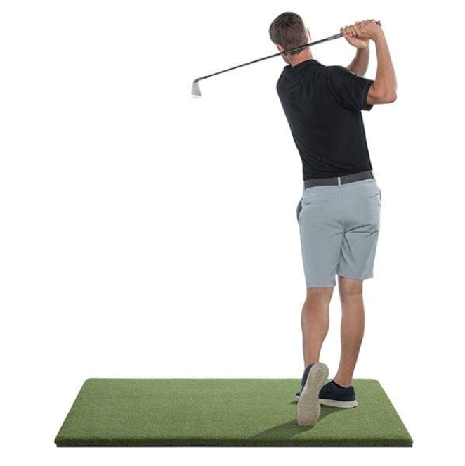 The mat adds another layer of value to the package. Buyers can choose a 5′ x 5′ SwingTurf Hitting Mat or upgrade to a 4′ x 9′ version. The SwingTurf mat features 5/8-inch foam backing and a 1-inch pile height with lifelike nylon turf. That matters because a quality mat helps practice feel more natural. It gives golfers a stable hitting surface and supports repeated swings over time. It also helps turn a small corner of a room into a more polished golf training area. When paired with the GC3 and the net, the mat helps create a setup that feels ready for serious use.