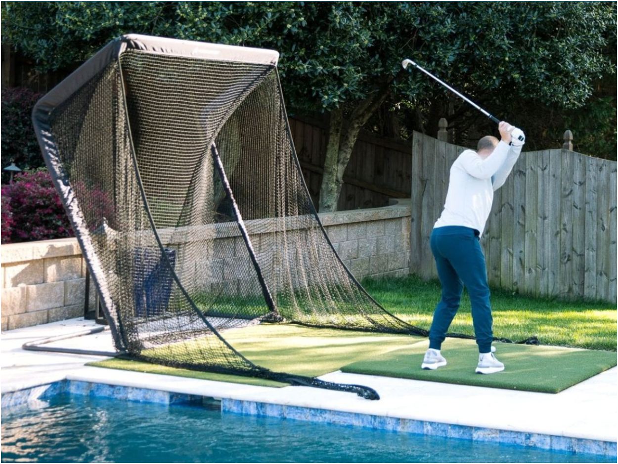 The included net plays a major role in that experience. Buyers can choose between the SwingNet Pro 7×7 and the SwingNet Pro XL 8×8. Both options help create a dependable practice area for indoor or outdoor use. The net uses an easy-to-assemble powder-coated aluminum frame, ballistic-grade netting, automatic ball return, and pre-attached side barriers. This design helps golfers practice with confidence and spend less time chasing golf balls. A dependable net also makes a home practice station feel more complete. It encourages more regular use and helps turn practice into a routine rather than an occasional activity.