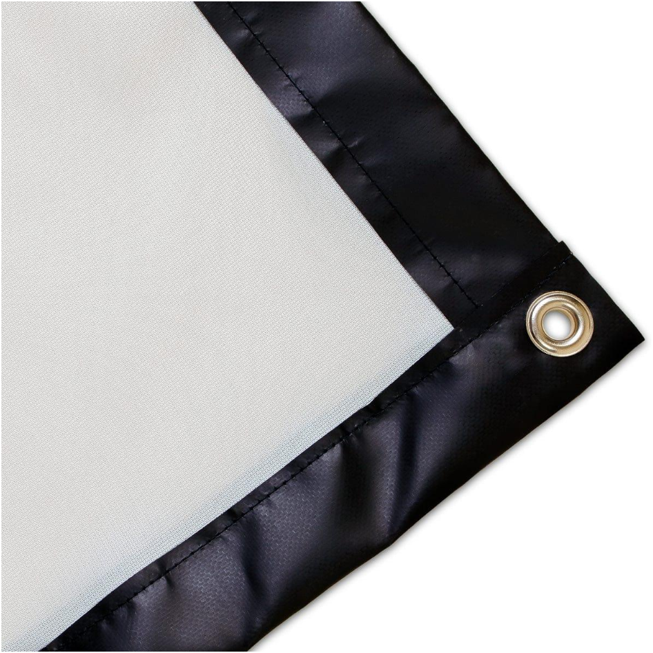 The SIMDIY Premium Golf Simulator Impact Screen transforms any room into a high-performance practice bay. It’s built from ballistic‑grade woven polyester that withstands high‑speed shots. The crisp white surface delivers sharp, immersive visuals and supports various aspect ratios to match your projector setup. With reinforced vinyl borders and 3/8″ grommets, the screen hangs with ease. You simply thread bungees or zip‑ties through the grommets for quick setup, no tools or framing hassle needed.