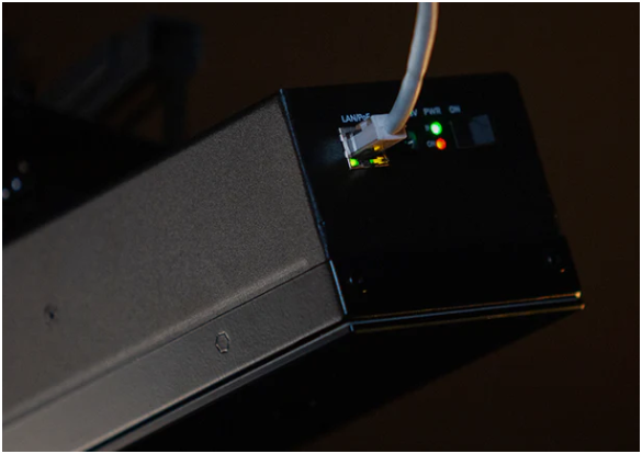 The install itself is designed to be clean. The EYE XR supports Power over Ethernet, meaning power and data can run through a single cable path to the unit for a tidy ceiling install. Uneekor’s manual shows the PoE adapter and LAN cable setup, and PoE is listed as a key convenience feature. The practical benefit here is reliability and aesthetics: fewer loose cables, fewer connection points, and a setup that looks like it belongs in a finished sim room.