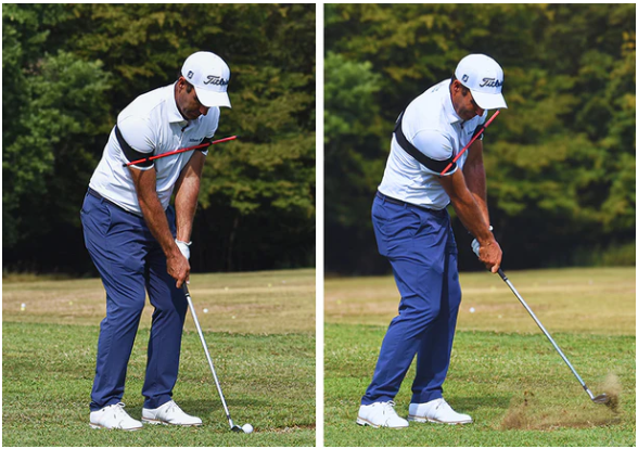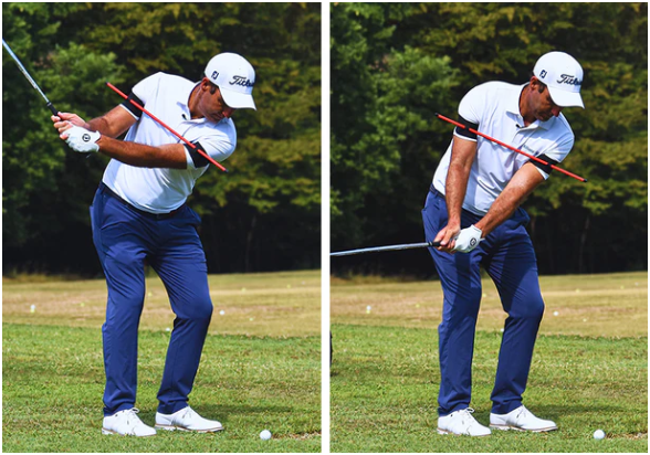 - Highlights the shoulder plane and rotation through the swing